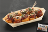 Traditional Japanese-style takoyaki, baked wheat cakes filled with tender pieces of octopus. A savoury street-food classic, perfect as an appetizer or snack. Each pack weighs approximately 500g.